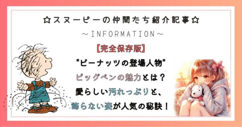 “ピーナッツの登場人物”ピッグペンの魅力とは?愛らしい汚れっぷりと、飾らない姿が人気の秘訣!