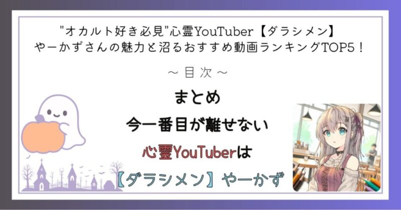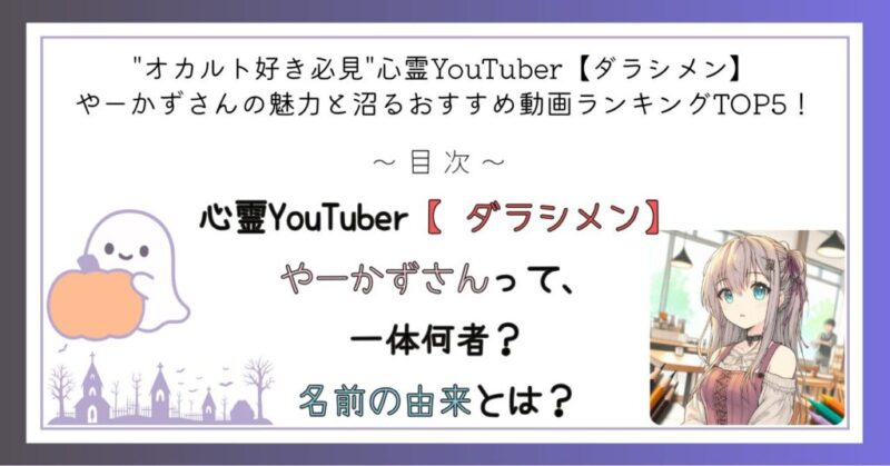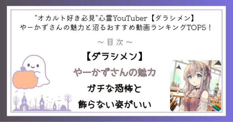 さてさて、今回は、心霊YouTuber界でマジで人気爆発中の「ダラシメン-ホラーチャンネル」のやーかずさんについて、その謎めいた人物像から、ゾクゾクする魅力、そして「これだけは絶対見とけ!」っていうおすすめ動画まで、かなり詳しく語ってきましたけど、どうでしたか?