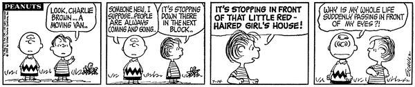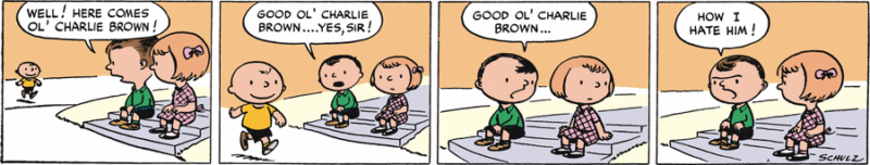 『ピーナッツ』の連載が始まった最初のコミックストリップの、なんと最初のひとコマ目に、チャーリー・ブラウンは堂々と登場しています。