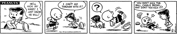 ALL YOU HAVE TO DO IS HOLD THE BALL, LUCY... THEN I'LL COME RUNNING UP, AND KICK IT...