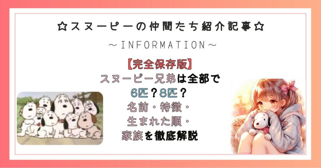 >>>次のページからは「スヌーピー兄弟の生まれた順番と性格」について紹介していきます。