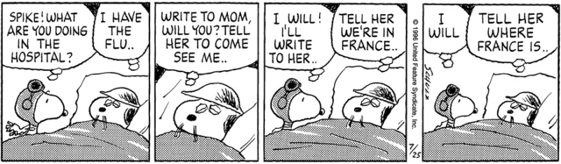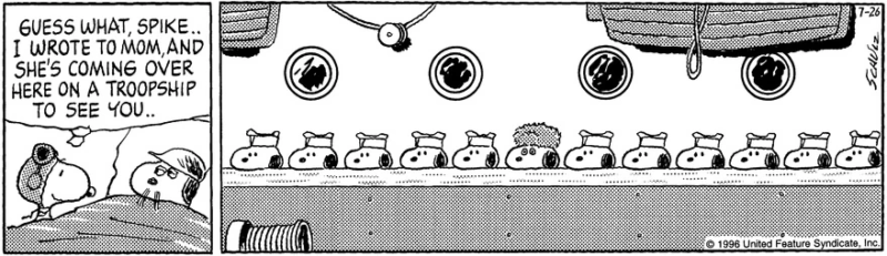 スヌーピーのママが漫画に登場したのは「1996年7月26日」!インフルエンザで寝込んで弱っているスパイクに会いに来てくれるシーン!