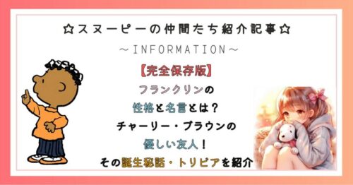 もっとフランクリンを知りたい方はこちら「“ピーナッツの登場人物”フランクリンの性格と名言とは?チャーリー・ブラウンの優しい友人」をチェックしてね。