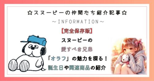 もっとスヌーピーの兄弟を知りたい方はこちら「スヌーピー兄弟は何人(何匹)いる?生まれた順番で見る兄弟の特徴」をチェックしてね。