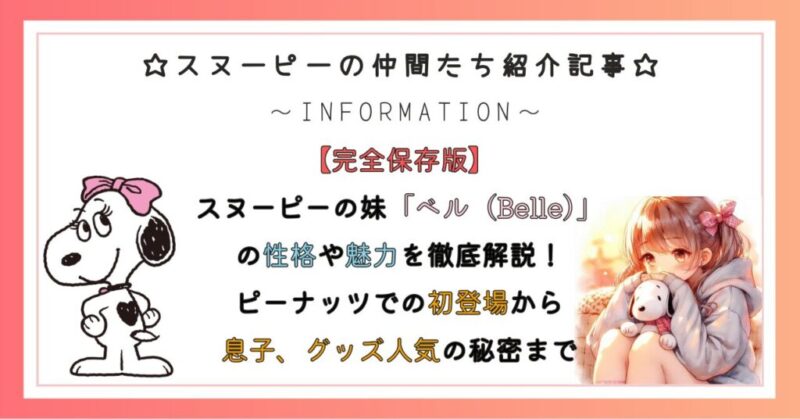 【完全保存版】スヌーピーの妹「ベル(Belle)」の性格や魅力を徹底解説!ピーナッツでの初登場から息子、グッズ人気の秘密まで