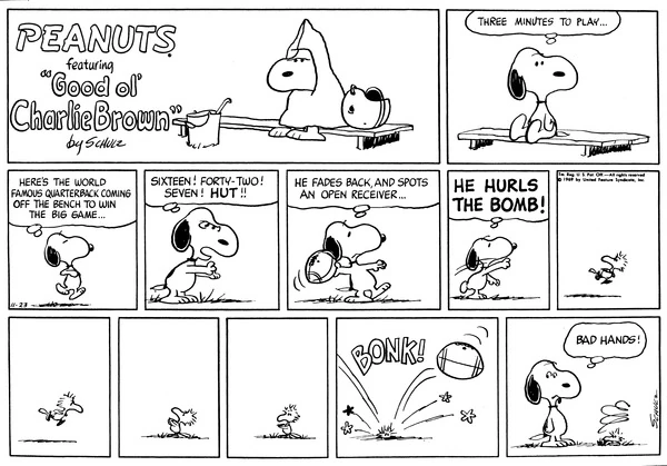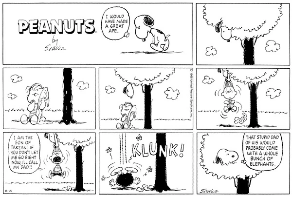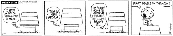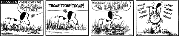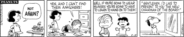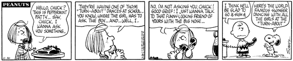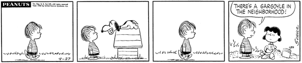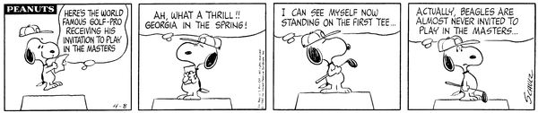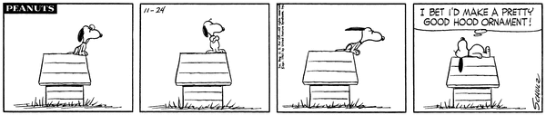 1970年2月16日 ヘッド・ビーグル (The “Head Beagle”)1970年6月11日 世界的に有名なテニスプレーヤー (World Famous Tennis Player)1970年8月25日 世界的に有名な食料品店の店員 (World Famous Grocery Clerk)1970年11月30日 世界的に有名なスウィンガー (World Famous Swinger)1971年4月11日 イースター・ビーグル (The Easter Beagle)1971年4月25日 牧羊犬 (A sheep dog)1971年5月27日 ジョー・クール (Joe Cool)1971年9月2日 世界的に有名なアメフトコーチ (World Famous Football Coach)1971年10月2日 世界的に有名な水泳選手 (World Famous Swimmer)1971年12月6日 世界的に有名なスケーター (World Famous Skater)1972年1月12日 世界的に有名な弁護士 (The World Famous Attorney)1972年2月7日 宇宙船エンタープライズ号の船長 (Captain of the Starship Enterprise)1972年8月14日 海賊 (A pirate)1972年11月10日 コウモリ (A bat)1973年1月6日 ウッドストック (Woodstock)1973年12月2日 アメフトチームのドクター (A football team doctor)1974年11月7日 世界的に有名な意地悪なスケートのプロ (World Famous Crabby Skating Pro)1975年2月18日 ジョー・モトクロス (Joe Motocross)1975年3月24日 世界的に有名なトリュフ犬 (The World Famous Truffle Hound)1975年4月2日 馬 (A horse)1975年6月24日 飛行機の整備士 (An airplane mechanic)1975年7月2日 商工会議所の男 (A man from the chamber of commence)1977年9月12日 自由の女神 (The Statue of Liberty)1977年10月27日 フクロウ (An owl)1977年12月5日 ペパーミント・パティ (Peppermint Patty)1978年10月16日 世界的に有名なディスコ・ダンサー (World Famous Disco Dancer)1979年4月1日 エイプリルフール (The April Fool)1979年5月30日 ブラックジャック・スヌーピー(川船の博打打ち) (Blackjack Snoopy)1979年6月18日 世界的に有名な測量士 (The World Famous Surveyor)1979年6月22日 案山子 (A scarecrow)1979年10月28日 獰猛なジャングルの動物 (A fierce jungle animal)