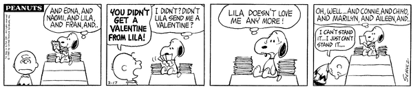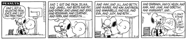 スヌーピー「それからゼルマ、ジャネル、ブーツ、パット、シドニー、ウィニー、ジーン、ローズマリー、コートニー、フェーン、メレディス……」