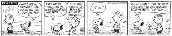 チャーリー・ブラウン「もらったバレンタインを自慢するなんて、すごく下品なことだよ!」