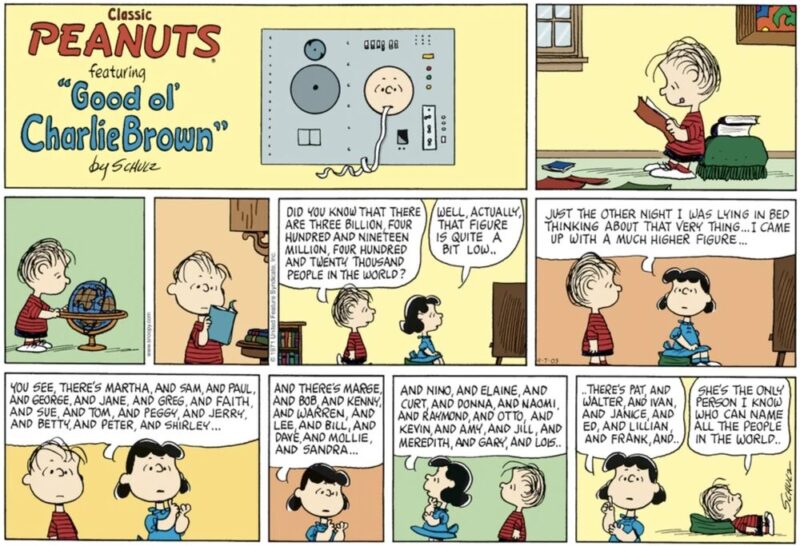 ライナス「世界には34億1942万人もの人間がいるって知ってた?」