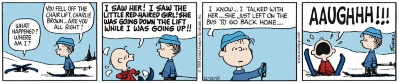 1969年12月20日・22日 スキー場ですれ違う…チャーリーブラウンと赤毛の女の子