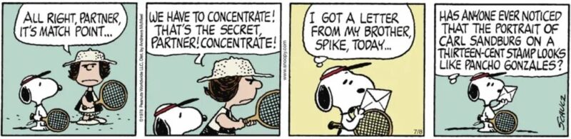 スヌーピー「13セント切手のカール・サンドバーグの肖像画がパンチョ・ゴンザレスに似てるって、誰か気づいたことあるかな?」