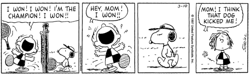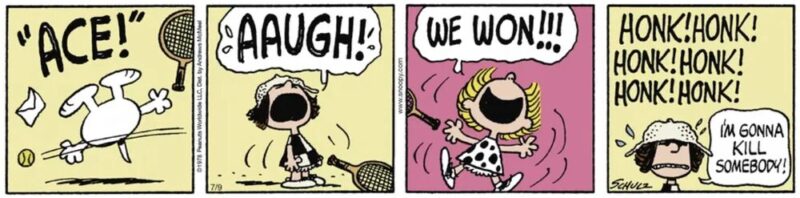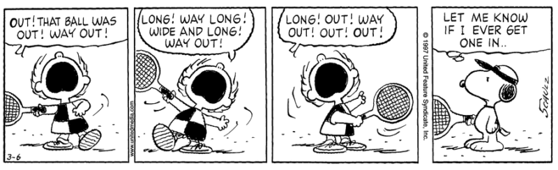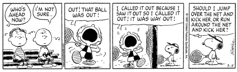 ライナス:「テニスの試合はどうなってる?」