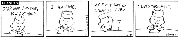チャーリーブラウンがサマーキャンプでずっとため息ばかりをしているようですね。