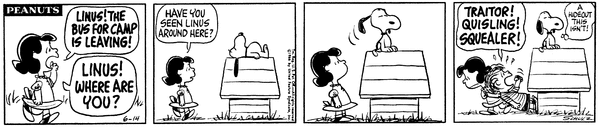 ルーシー「ライナス!キャンプ行きのバスが出ちゃうわよ!ライナス!どこにいるの?」