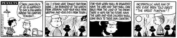 ライナス「ところで、皆さんは『グレート・パンプキン(カボチャ大王)』について聞いたことがありますか?」