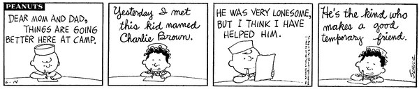 チャーリー「やあ、親友。僕はこれから2週間キャンプに行ってくるよ…」