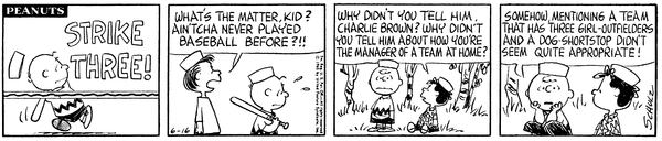 チャーリー「外野に女の子が3人いて、ショートが犬のチームだなんて、言うのが適切だとは思えなかったんだよ!」