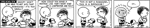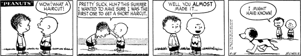 でも、初期のストリップをよーく見ると、彼がチャーリー・ブラウンを「上回る」描写が結構あるんです。