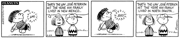 ペパーミント・パティ「これがホセ・ピーターソンの打率よ。家族がニューメキシコに住んでた年はね…」