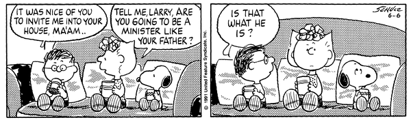 まさに、ピーナッツの隠れた名脇役「ラリー」サリーを翻弄した牧師の息子の正体 を知ることで、シュルツ氏が描きたかった「人間模様の皮肉」が見えてくるのです。