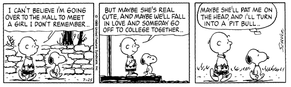 スヌーピー「彼女が僕の頭をなでてくれたら、僕はピットブルにでも変身しちゃうかもな…」