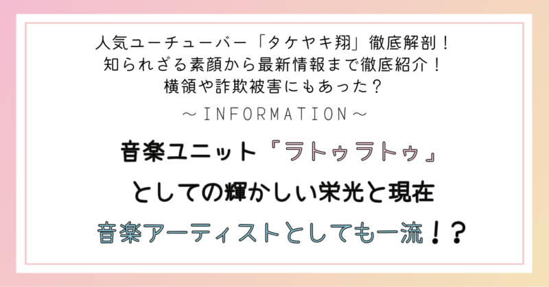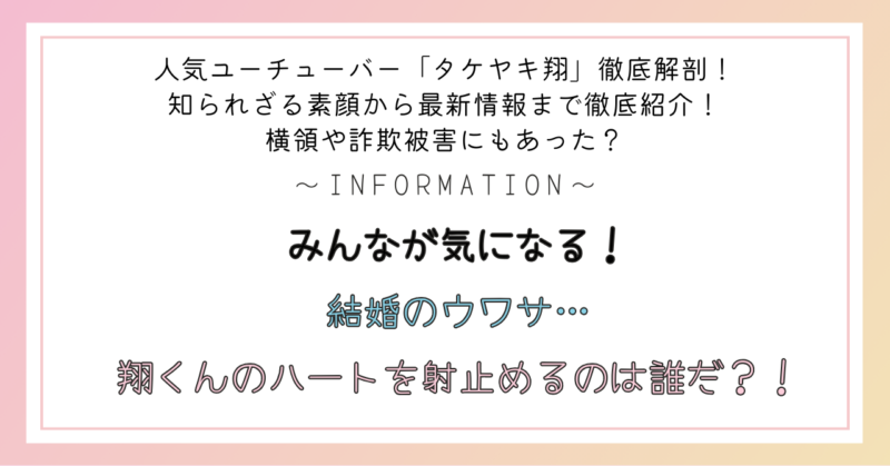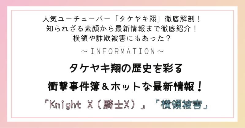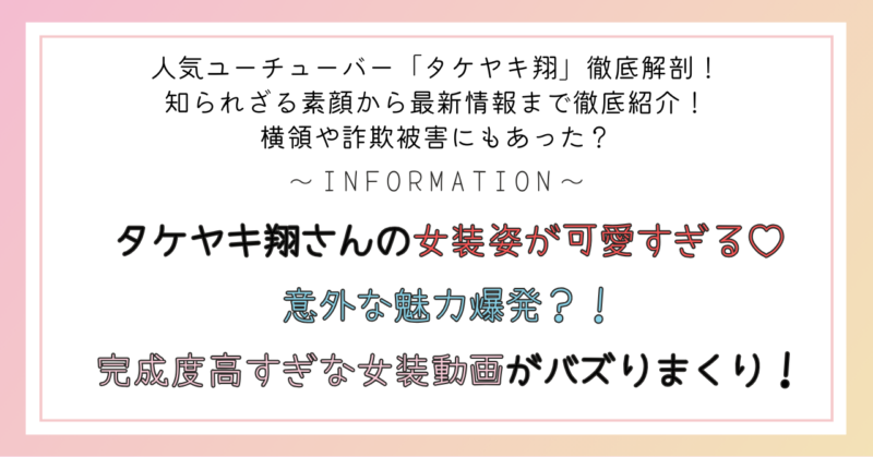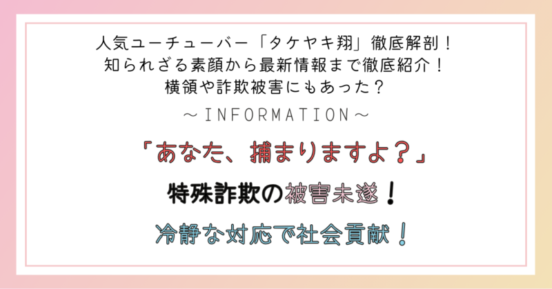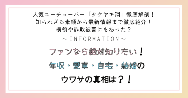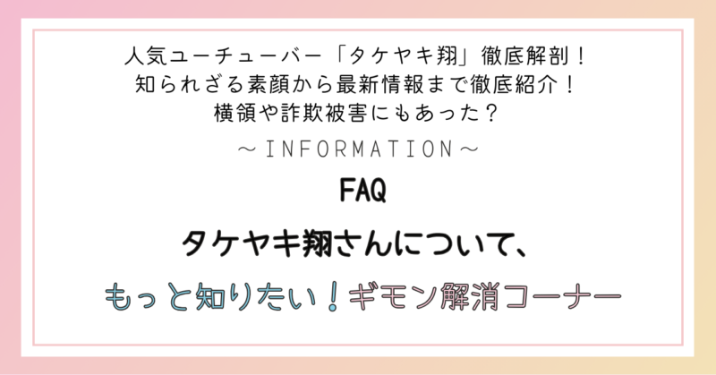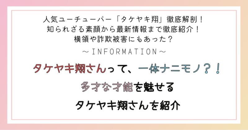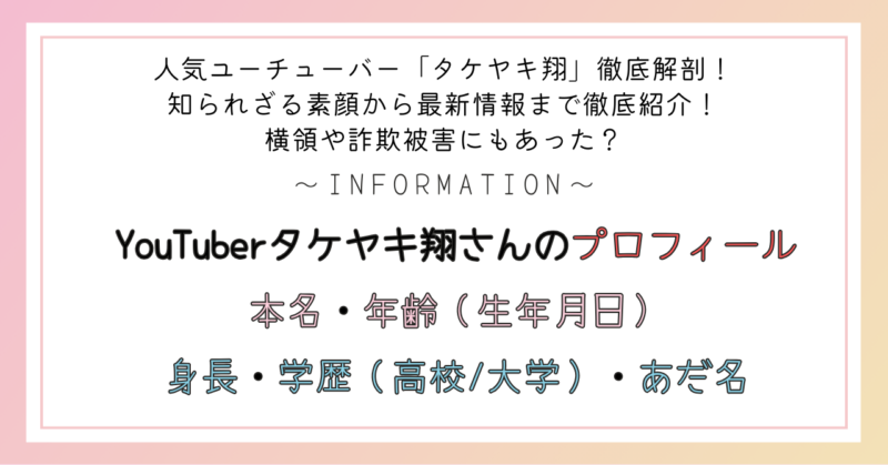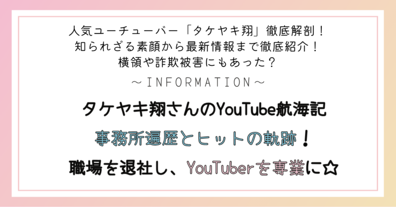 人気ユーチューバー「タケヤキ翔」徹底解剖!知られざる素顔から最新情報まで徹底紹介!横領や詐欺被害にもあった?