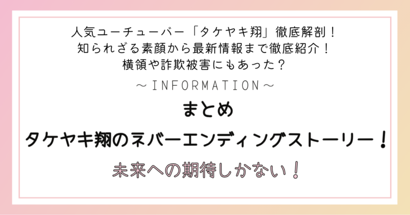 まとめ タケヤキ翔のネバーエンディングストーリー!未来への期待しかない!