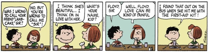 結局、パティもブチ切れてフロイドを叩きのめすという、ピーナッツらしいコミカルで理不尽なオチがつくことになりました。