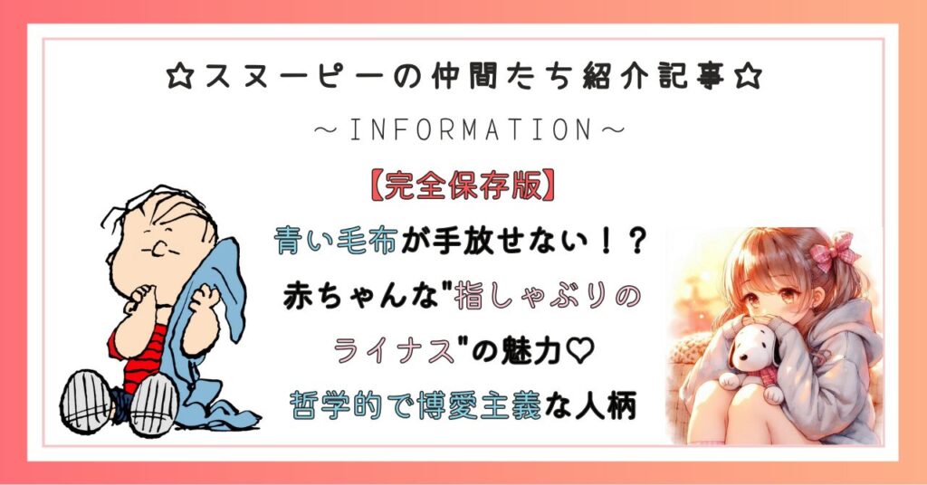きっとあなたも、ライナスのことが大好きになりますよ( *´艸`)知れば知るほど奥深い、ライナスの魅力。彼の言葉や行動に、これからもぜひ注目してみてくださいね!