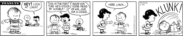 1999 年 3 月 23 日の漫画に登場するリディアによると、ライナスは消しゴムの匂いがするそうです。実はリディアがPEANUTSに登場した最後となります。