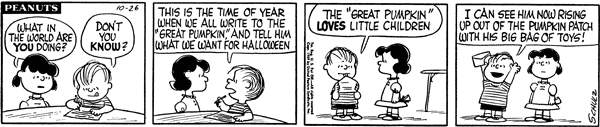 | 崇拝対象 | かぼちゃ大王 (The Great Pumpkin)、ミス・オースマー先生 |