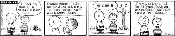 チャーリー・ブラウン、僕の先生は世界一だよ! 彼女は「宝石の中の宝石(珠玉の存在)」なんだ!